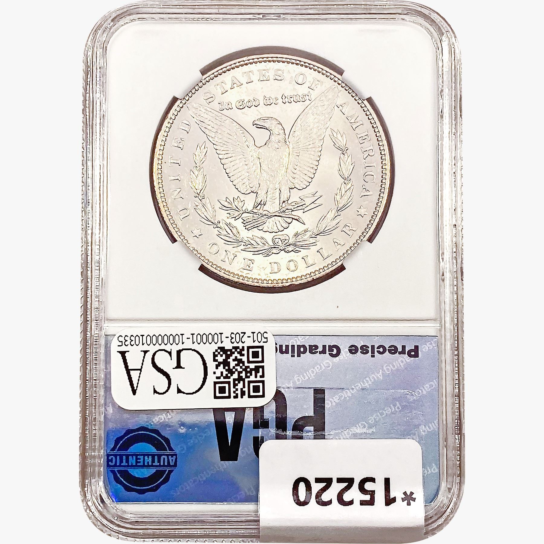 COINS AND CURRENCY LISTED IN GSA’S CATALOG AS GRADED AND ENCAPSULATED BY PCGS, NGC, ANACS, ICG, PCGS CURRENCY, PMG, PCGS BANKNOTE GRADING, CMC OR ANY OTHER THIRD-PARTY GRADING SERVICE ARE LIKEWISE SOLD “AS-IS” EXCEPT AS EXPRESSLY SET FORTH HEREIN. ALL THIRD-PARTY GRADING SERVICE GUARANTEES, INCLUDING AUTHENTICITY, ARE THE SOLE RESPONSIBILITY OF THE THIRD-PARTY GRADING SERVICE AND NOT WARRANTIES OR GUARANTEES OF GSA. BIDDERS SHOULD CONTACT THESE THIRD-PARTY GRADING SERVICES DIRECTLY WITH RESPECT TO ANY CLAIMS OR QUESTIONS THEY MAY HAVE CONCERNING THEIR GUARANTEES AND WARRANTIES. BIDDERS ACKNOWLEDGE AND AGREE THAT AUCTIONEER IS NOT BOUND BY OR LIABLE FOR ANY OPINION OR CERTIFICATION BY ANY THIRD-PARTY GRADING SERVICE. REMOVAL OF A PRODUCT FROM ITS PROTECTIVE CASING OR HOLDER OR ALTERATION OF ANY COIN HOLDER WAIVES ALL RIGHTS CONCERNING THE PRODUCT CONTAINED THEREIN.