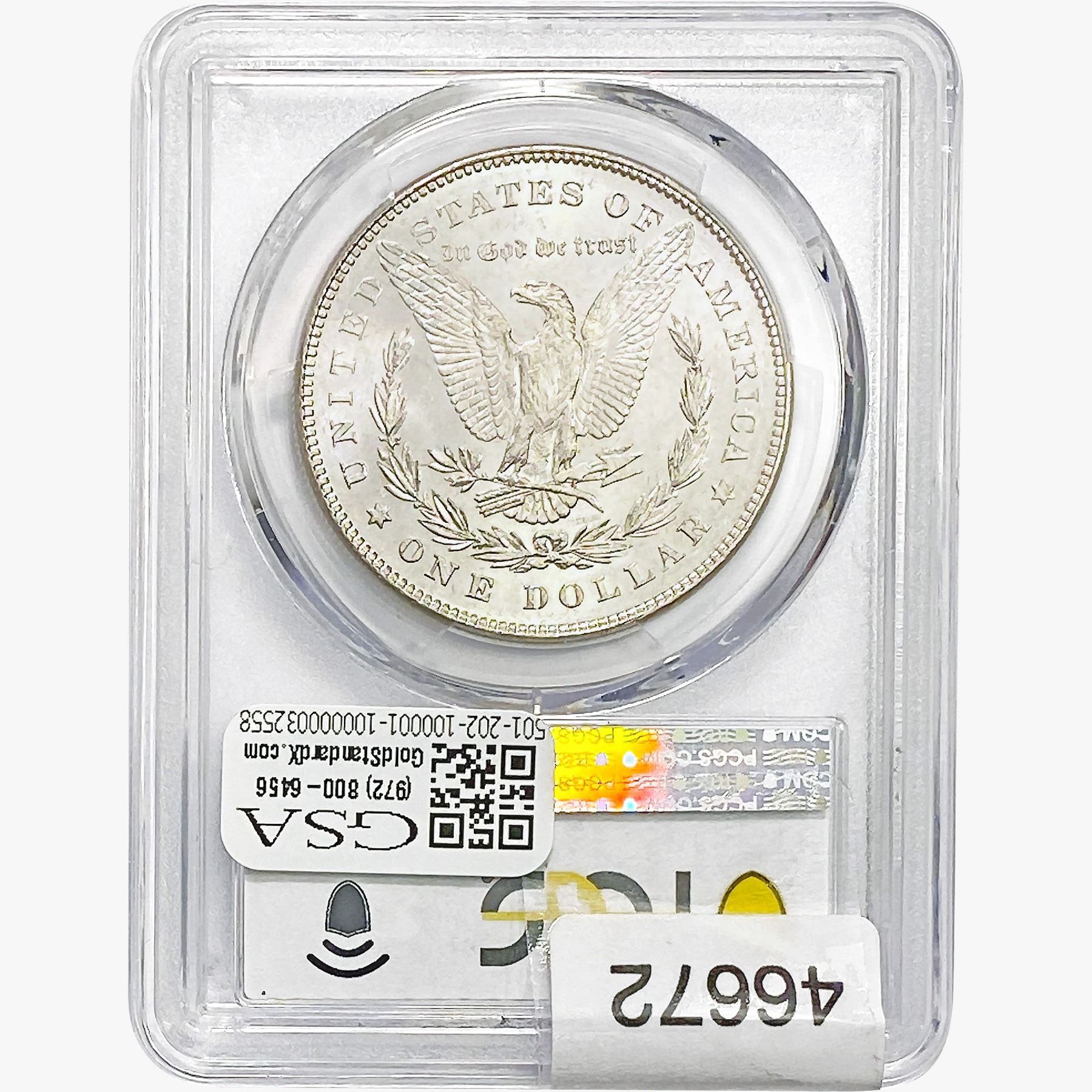 e. Coins sold referencing a third-party grading service are sold “AS IS” without any express or implied warranty, except for a guarantee by GSA that they are genuine. Removal or alteration of the holder, voids all of Bidder’s claims concerning that Product. Certain warranties may be available from the grading services and Bidders are referred to them for further details: Numismatic Guaranty Corporation (NGC), PO Box 4776, Sarasota, FL 34230, www.ngccoin.com/services/writtenguarantee.asp; Professional Coin Grading Services (PCGS), PO Box 9458, Newport Beach, CA 92658, www.pcgs.com/guarantee.html; ANACS, 6555 S. Kenton St., Ste. 303, Englewood, CO 80111; and Independent Coin Grading Co. (ICG), 7901 East Bellview, Ave., Suite 50, Englewood, CO 80111.