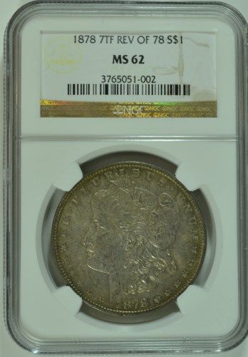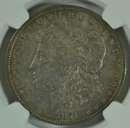 1878 7TF REVERSE OF 78 MORGAN SILVER DOLLAR, NGC MS-62 COLORS