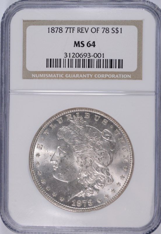 1878 7TF REVERSE OF 78 MORGAN SILVER DOLLAR, VAM 132, NGC MS-64