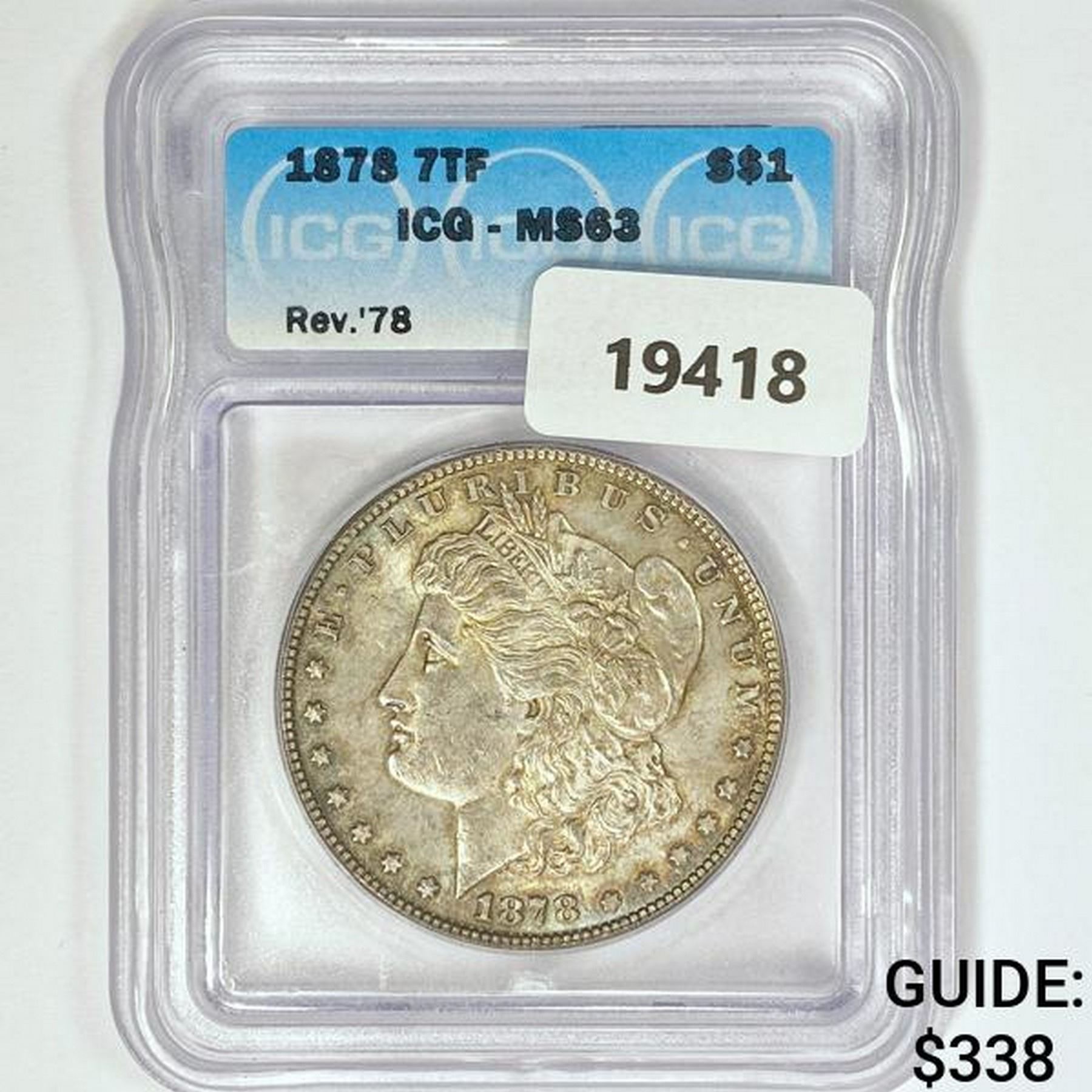 1878 7TF Rev 78 Morgan Silver Dollar ICG MS63