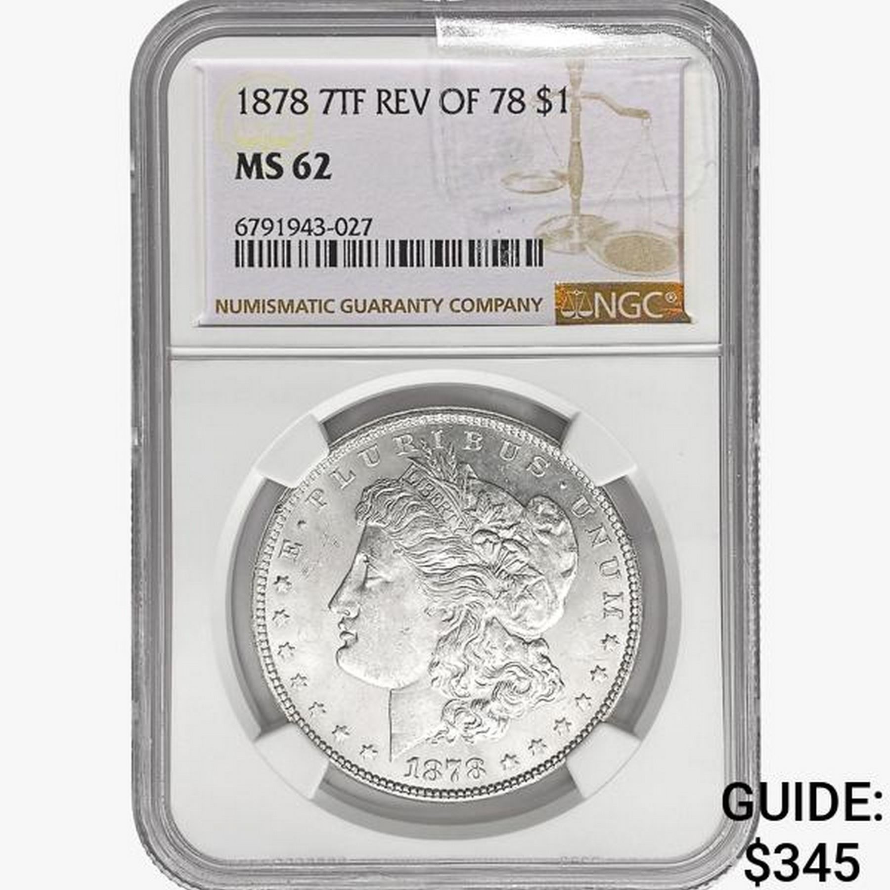 1878 7TF Rev 78 Morgan Silver Dollar NGC MS62