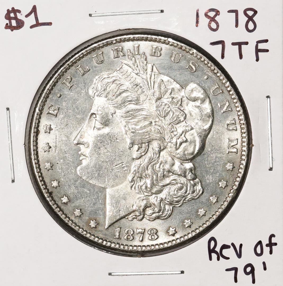 One 1878 7TF Rev of 79 $1 Morgan Silver Dollar Coin.
