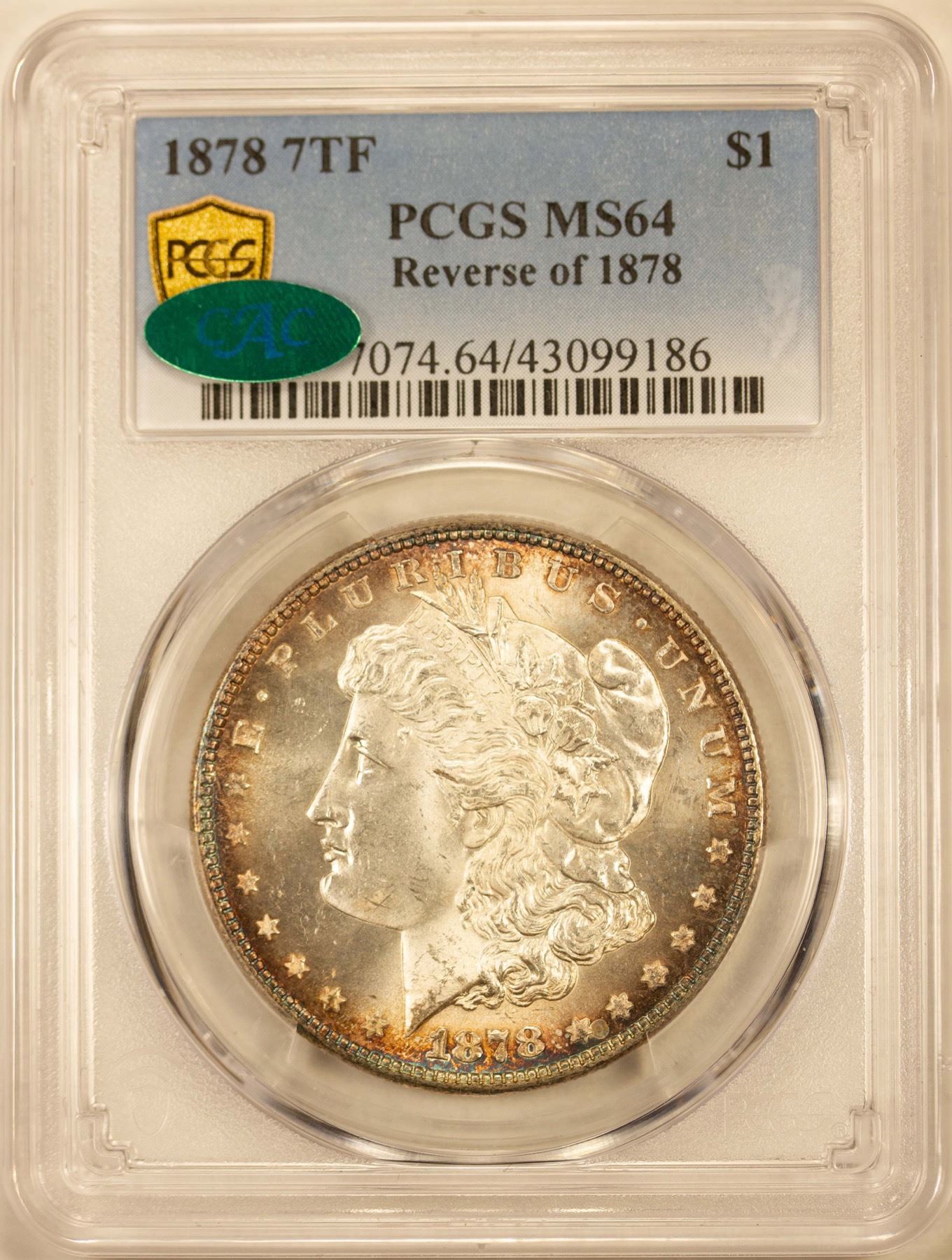 1878 7TF Reverse Of 1878 Morgan Dollar $1 PCGS MS-64 CAC Toned