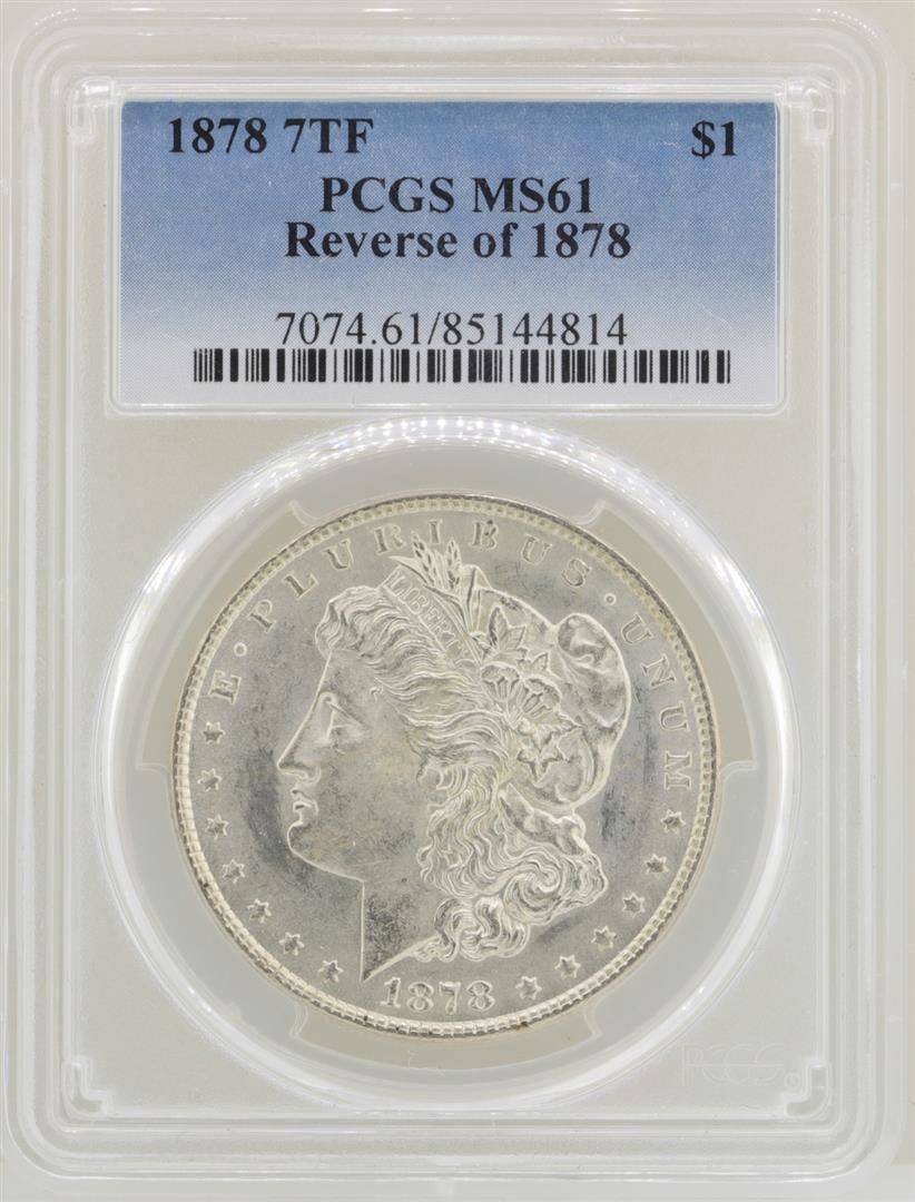 One 1878 7TF Reverse of 1878 $1 Morgan Silver Dollar Coin PCGS MS61. PCGS Graded.