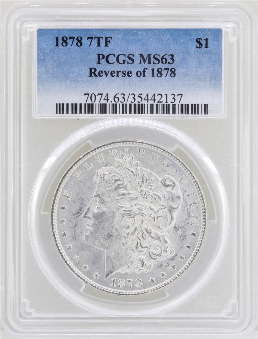 One 1878 7TF Reverse of 1878 $1 Morgan Silver Dollar Coin PCGS MS63. PCGS Graded.