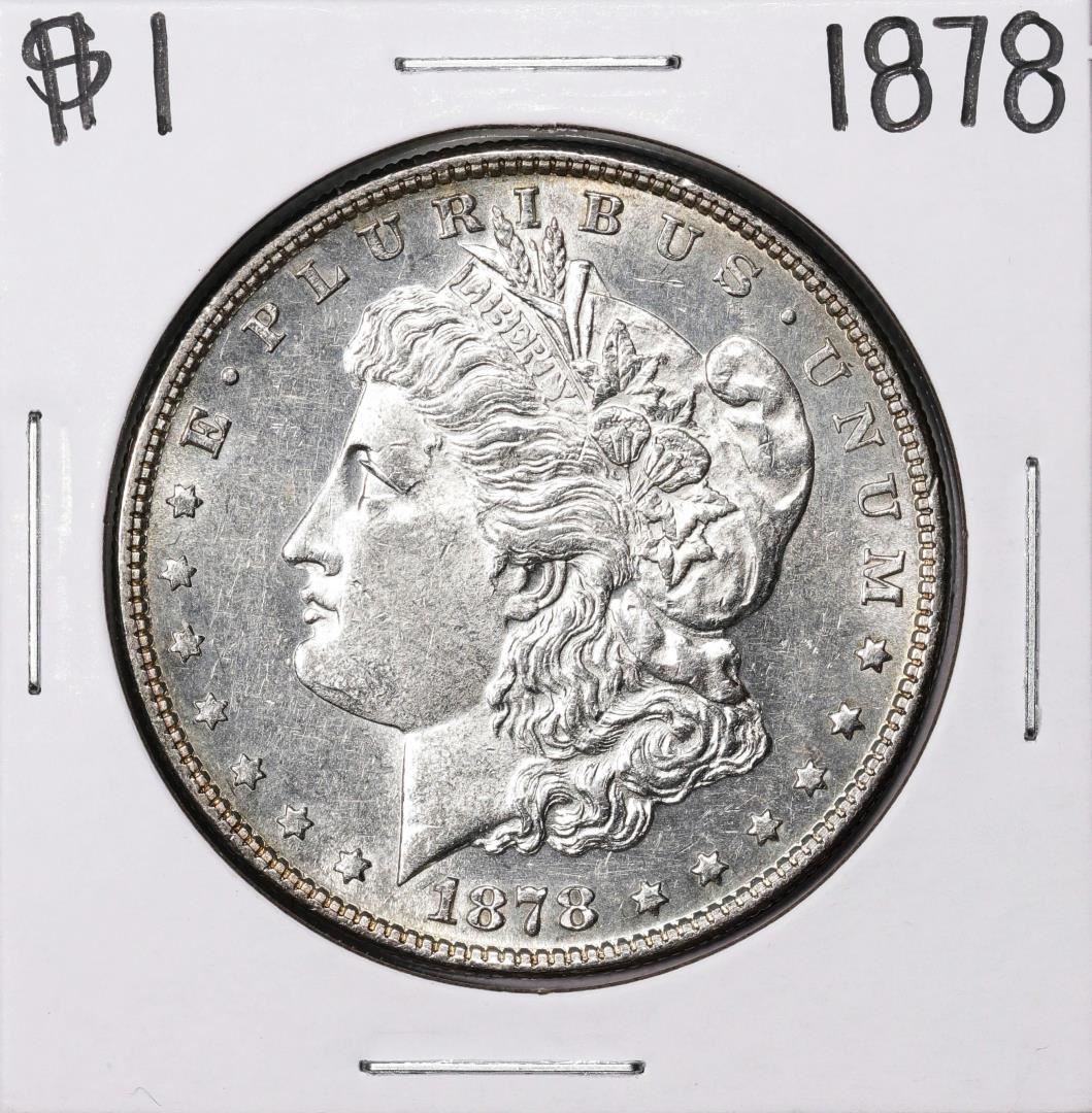 One 1878 7TF Reverse of 1878 $1 Morgan Silver Dollar Coin.