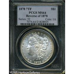 <B>1878 7TF<img border='0' src='http://www.heritagecoins.com/images/star.gif' width=10 height=10>$1 Reverse of 1878 MS64 PCGS.</B></I> Whisper of russet peripheral toning, with lustrous surfaces that reveal sharply struck motifs Lot:9875