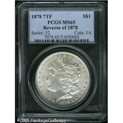 <B>1878 7TF<img border='0' src='http://www.heritagecoins.com/images/star.gif' width=10 height=10>$1 Reverse of 1878 MS65 PCGS.</B></I> Brilliant surfaces display sharply struck devices, and no mentionable marks. Very pleasing overall. Lot:9880