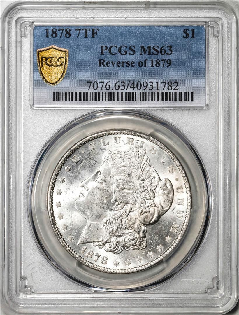 1878 7TF Reverse of 1879 $1 Morgan Silver Dollar Coin PCGS MS63