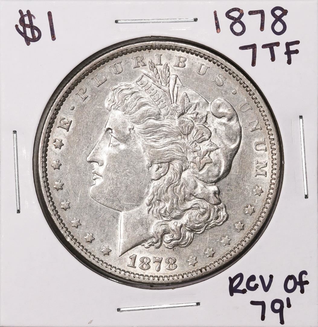 One 1878 7TF Reverse of 1879 $1 Morgan Silver Dollar Coin.