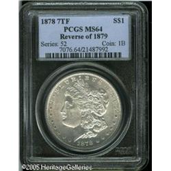 <B>1878 7TF<img border='0' src='http://www.heritagecoins.com/images/star.gif' width=10 height=10>$1 Reverse of 1879 MS64 PCGS.</B></I> Essentially brilliant and sharply struck. A few minor scuffs and light contact marks on Liberty's cheek and in the left obverse field are not bothersome. Lot:9885