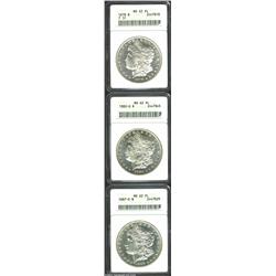 1878 7TF S$1 Reverse of 1878 MS62 Prooflike ANACS, brilliant with a few hard knocks on Liberty's face; 1880-O MS62 Prooflike ANACS, nicely reflective in the fields and untoned; and an 1887-O MS62 Prooflike ANACS, brightly reflective fields and a bit softly struck in the centers. 3 coins Important notice: We expect to be auctioning lots at the rate of 200-250 per hour. Sometimes eBay Premier live bid software cannot keep up with that pace, so we strongly recommend that you place a realistic proxy bid now as insurance to avoid disappointment. Also please note that all Heritage/CAA lots purchased through eBay Premier carry a 20% Buyer's Premium. Please make sure you read the Terms and Conditions.