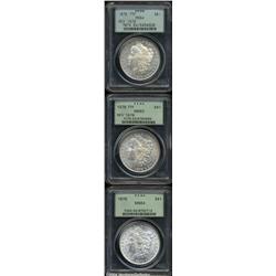 <B>1878 7TF<S$1> Reverse of 1878 MS64 PCGS,</B></I> well struck, pleasing luster, silver-gray color, attractive surfaces; <B>1878 7TF Reverse of 1879 MS63 PCGS,</B></I> exquisitely struck, light tan-gray color, a mark at 9 o'clock but otherwise very clean, struck from clashed dies; and an <B>1879 MS64 PCGS,</B></I> not fully struck in the centers, but lustrous and attractive. All three coins are in green label holders. 3 Coins <BR><BR><B>Important notice:</B> Heritage usually auctions material at the rate of 200-250 lots per hour. On some occasions eBay Live bid software or the Internet may not be able to keep up with the pace of the auction. We recommend placing a realistic absentee bid now as insurance to avoid disappointment. Occasionally the auctioneer may eliminate or reject an eBay Live bid, and the auctioneer may also reopen a lot after the close of the eBay live bidding (usually because we missed an audience bid), and may reject your bid even if it shows you as the winning bidder. By bidding via eBay Live, you agree that Heritage may award the lot to another bidder at its sole discretion under the circumstances described above or any other reasonable circumstances. Since eBay bids are not shown to us until we open the lot on the floor, we treat those bids just like floor bids. In most cases the floor responds before the eBay bid is presented to us, due to Internet lag time, so for consistency we have made it a policy that floor bids are always considered first over tie eBay live bids. Also please note that all Heritage lots purchased through eBay Live carry a 20% Buyer's Premium. Please make sure you read the Terms and Conditions before you bid.