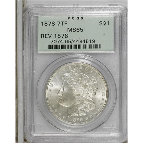 <B>1878 7TF S$1 Reverse of 1878 MS65 PCGS.</B></I> Light gold tints enrich the centers of this fully lustrous and penetratingly struck Gem. Impressively preserved, and encapsulated in a green label holder.<BR><BR><b>Shipping:</b> Coins & Currency (<a target="_blank" href="http://www.heritageauctions.com/common/shipping.php">view shipping information</a>)