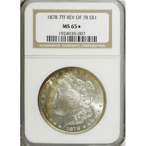 1878 7TF S$1 Reverse of 1878 MS65 S NGC. The streaks