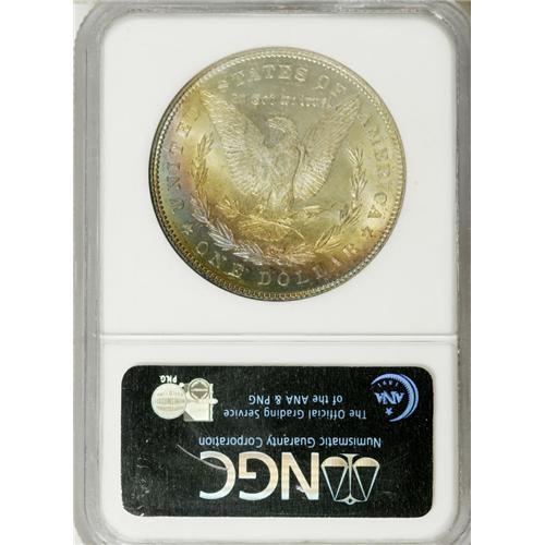 <B>1878 7TF S$1 Reverse of 1878 MS65 <img border='0' src='http://www.heritagecoins.com/images/star.gif' width=10 height=10> NGC.</B></I> The obverse displays streaks of orange, blue, and green, while the reverse is completely covered in a variegated pattern of these hues. A solidly struck and highly appealing Gem.<BR><BR><b>Shipping:</b> Coins & Currency (<a target="_blank" href="http://www.heritageauctions.com/common/shipping.php">view shipping information</a>)