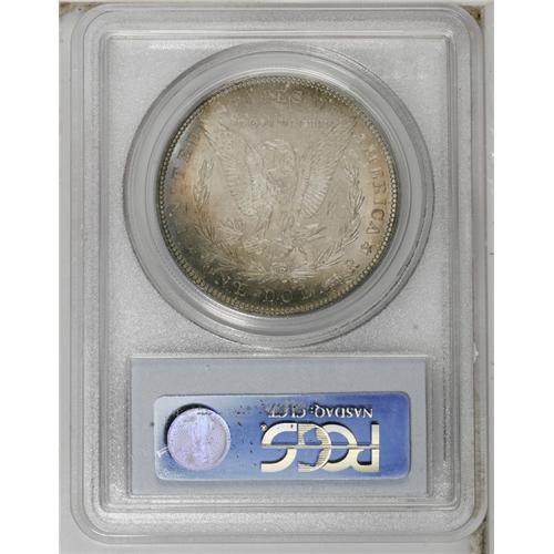 <B>1878 7TF S$1 Reverse of 1879 MS64 PCGS.</B></I> Glowing luster peeks through a thin veneer of iridescent cobalt-blue, mauve-gray, and yellow-gold toning. A powerful strike manifests itself in sharp definition in the hair over Liberty's ear and on the eagle's breast feathers. The grade is defined by a few minuscule bag marks.<BR><BR><b>Shipping:</b> Coin/Currency (<a target="_blank" href="http://www.heritageauctions.com/common/shipping.php">view shipping information</a>)