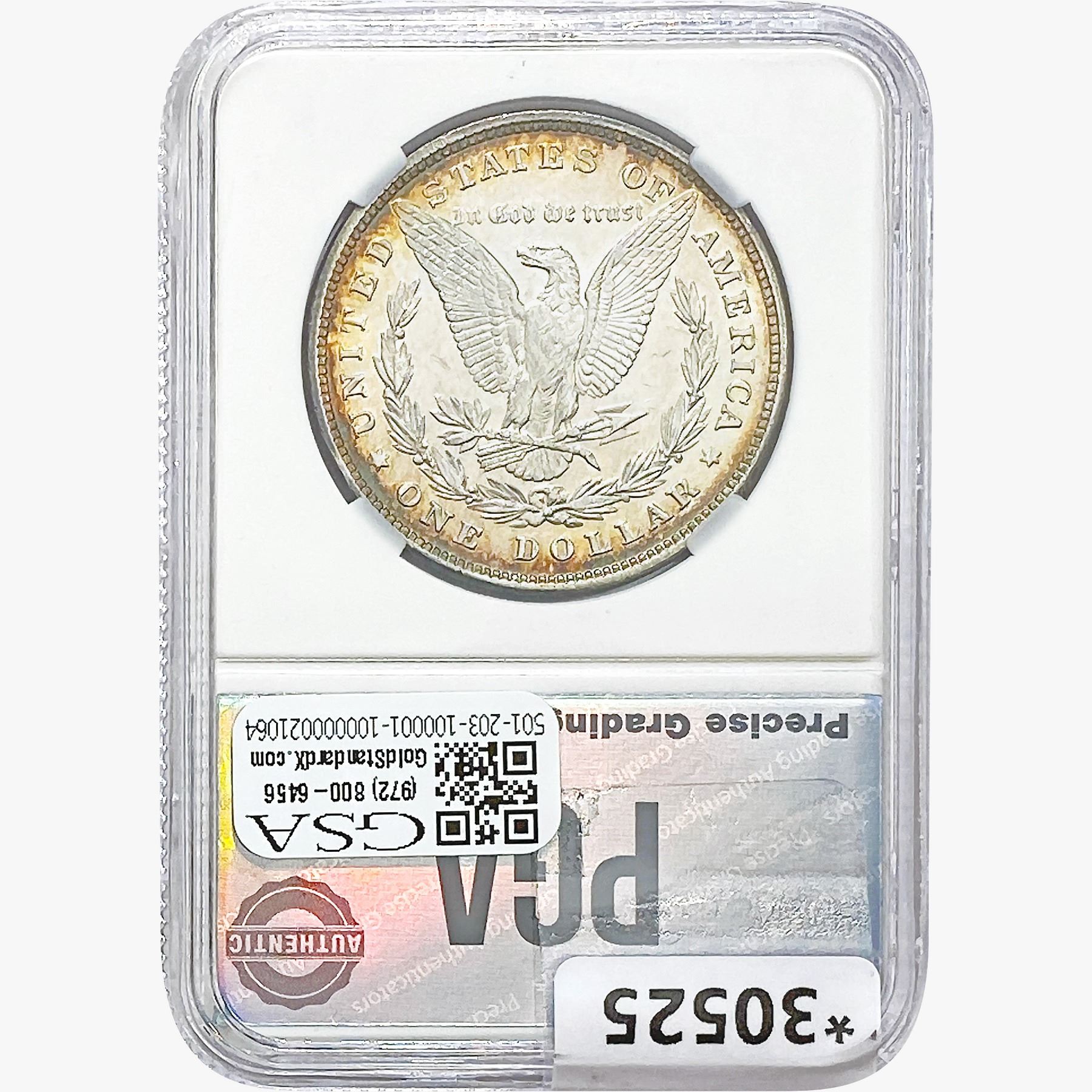 e. Coins sold referencing a third-party grading service are sold “AS IS” without any express or implied warranty, except for a guarantee by GSA that they are genuine. Removal or alteration of the holder, voids all of Bidder’s claims concerning that Product. Certain warranties may be available from the grading services and Bidders are referred to them for further details: Numismatic Guaranty Corporation (NGC), PO Box 4776, Sarasota, FL 34230, www.ngccoin.com/services/writtenguarantee.asp; Professional Coin Grading Services (PCGS), PO Box 9458, Newport Beach, CA 92658, www.pcgs.com/guarantee.html; ANACS, 6555 S. Kenton St., Ste. 303, Englewood, CO 80111; and Independent Coin Grading Co. (ICG), 7901 East Bellview, Ave., Suite 50, Englewood, CO 80111.