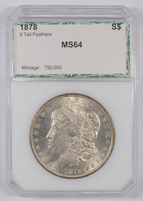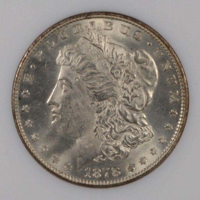 1878 8F MORGAN SILVER DOLLAR, PCI GREEN LABEL, MS-64