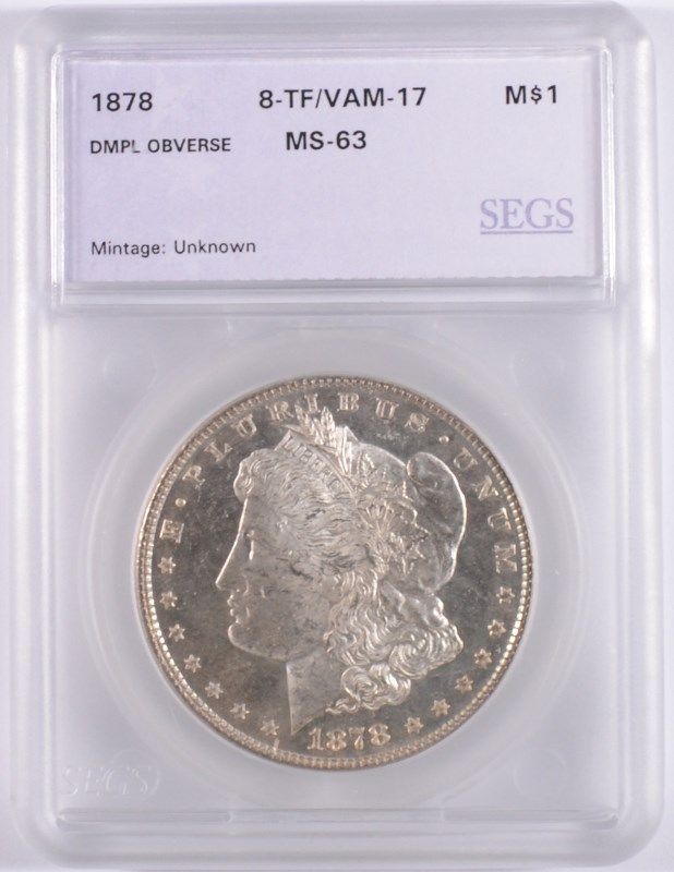 1878 8F MORGAN SILVER DOLLAR, SEGS MS-63 DMPL OBVERSE VAM-17