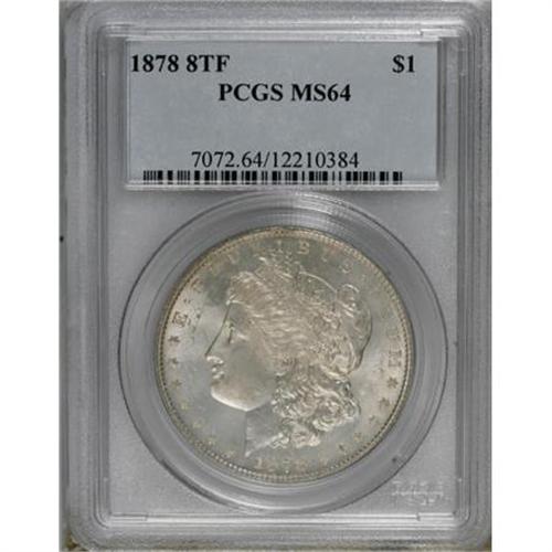 <B>1878 8TF $1 MS64 PCGS.</B></I> . PCGS Population (2020/463). NGC Census: (1714/342). Mintage: 699,300. Numismedia Wsl. Price for NGC/PCGS coin in MS64: $340. (#7072)<BR><BR><B>Coin Engraver:</B> George T. Morgan<BR><BR><b>Shipping:</b> Coins & Currency (<a target="_blank" href="http://www.heritageauctions.com/common/shipping.php">view shipping information</a>)