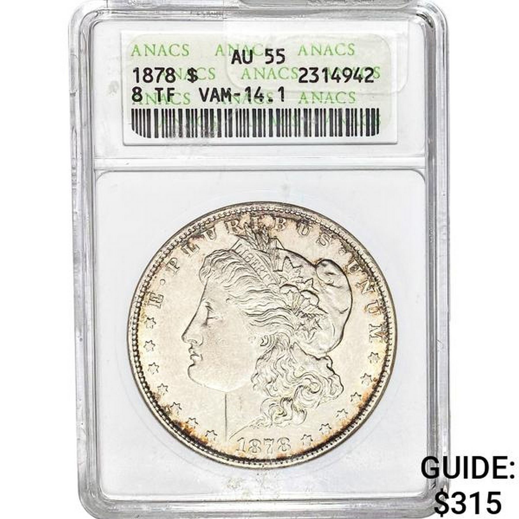 1878 8TF $1 Morgan Dollar ANACS AU55