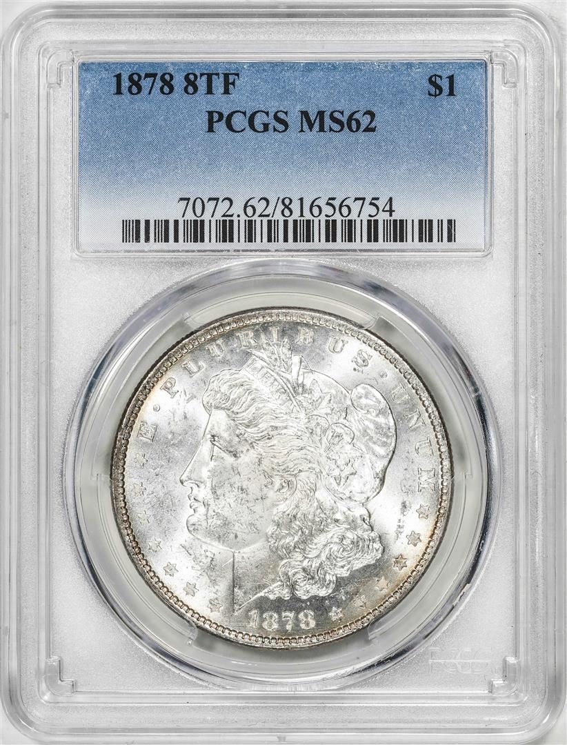 1878 8TF $1 Morgan Silver Dollar Coin PCGS MS62 Amazing Toning
