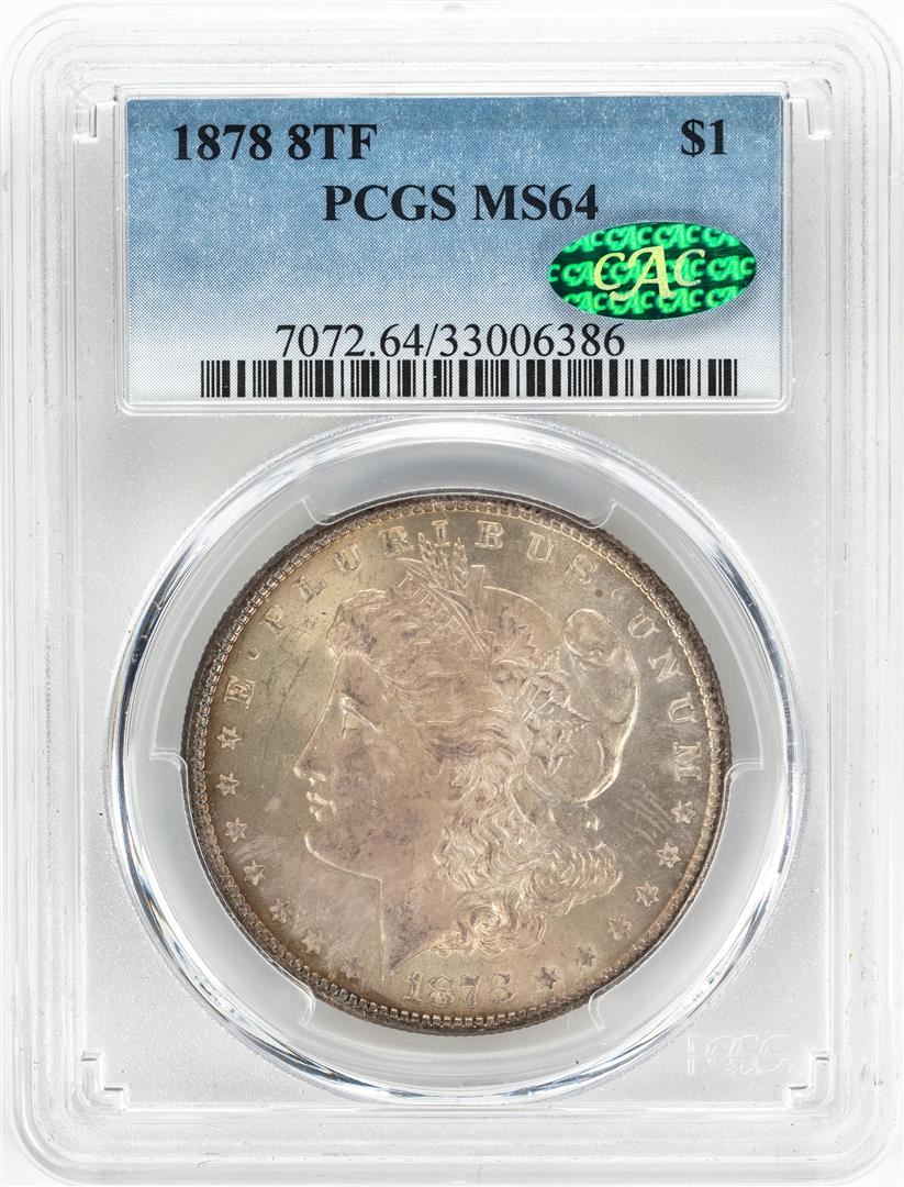 1878 8TF $1 Morgan Silver Dollar Coin PCGS MS64 CAC Nice Toning