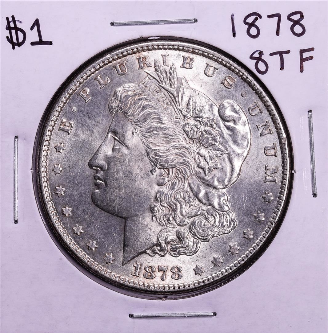 One 1878 8TF $1 Morgan Silver Dollar Coin.