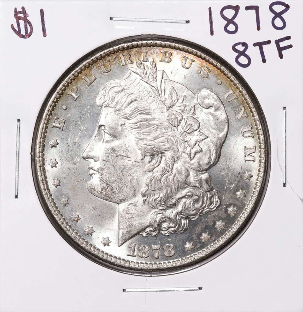 One 1878 8TF $1 Morgan Silver Dollar Coin.
