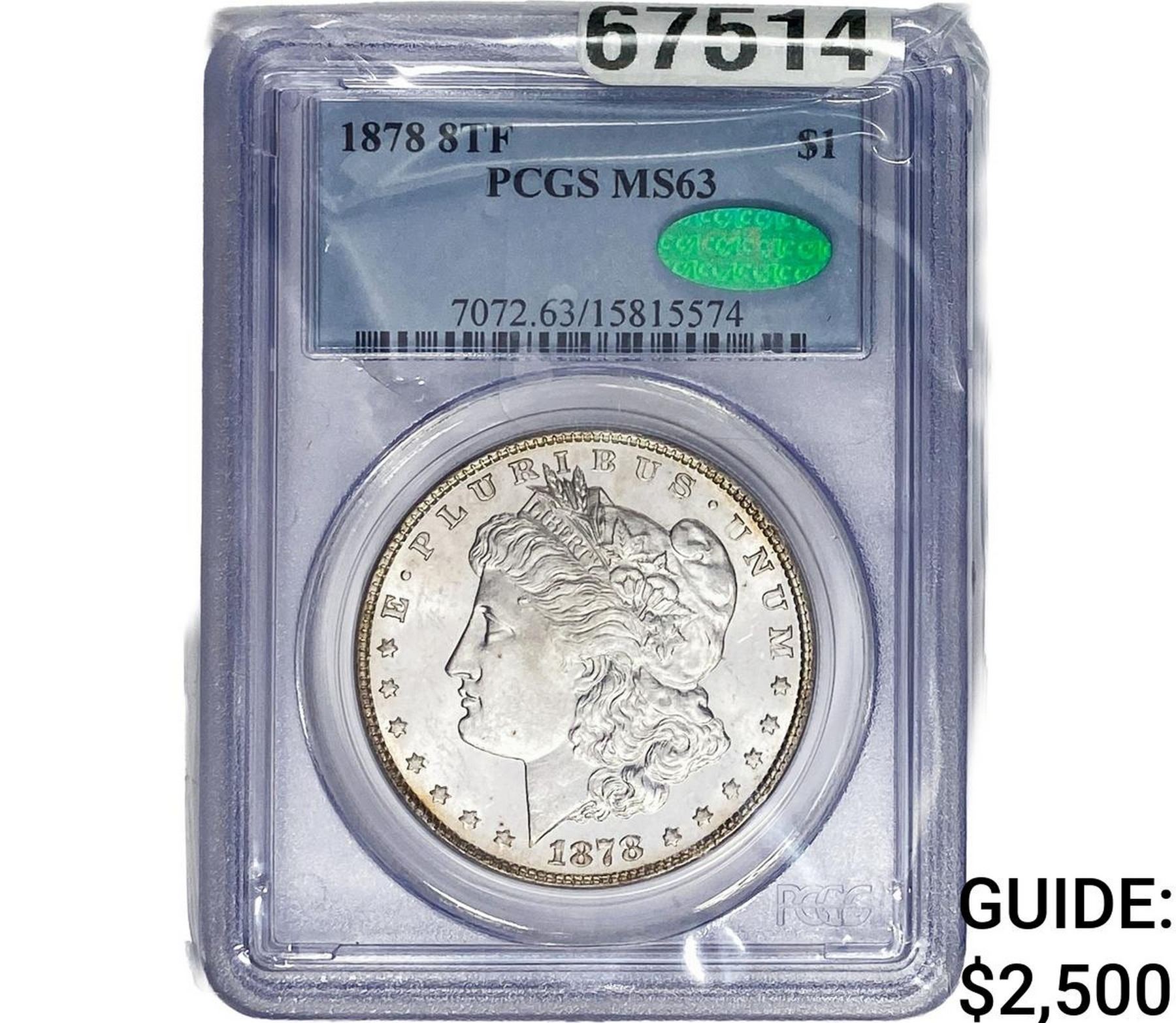 1878 8TF CAC Morgan Silver Dollar PCGS MS63
