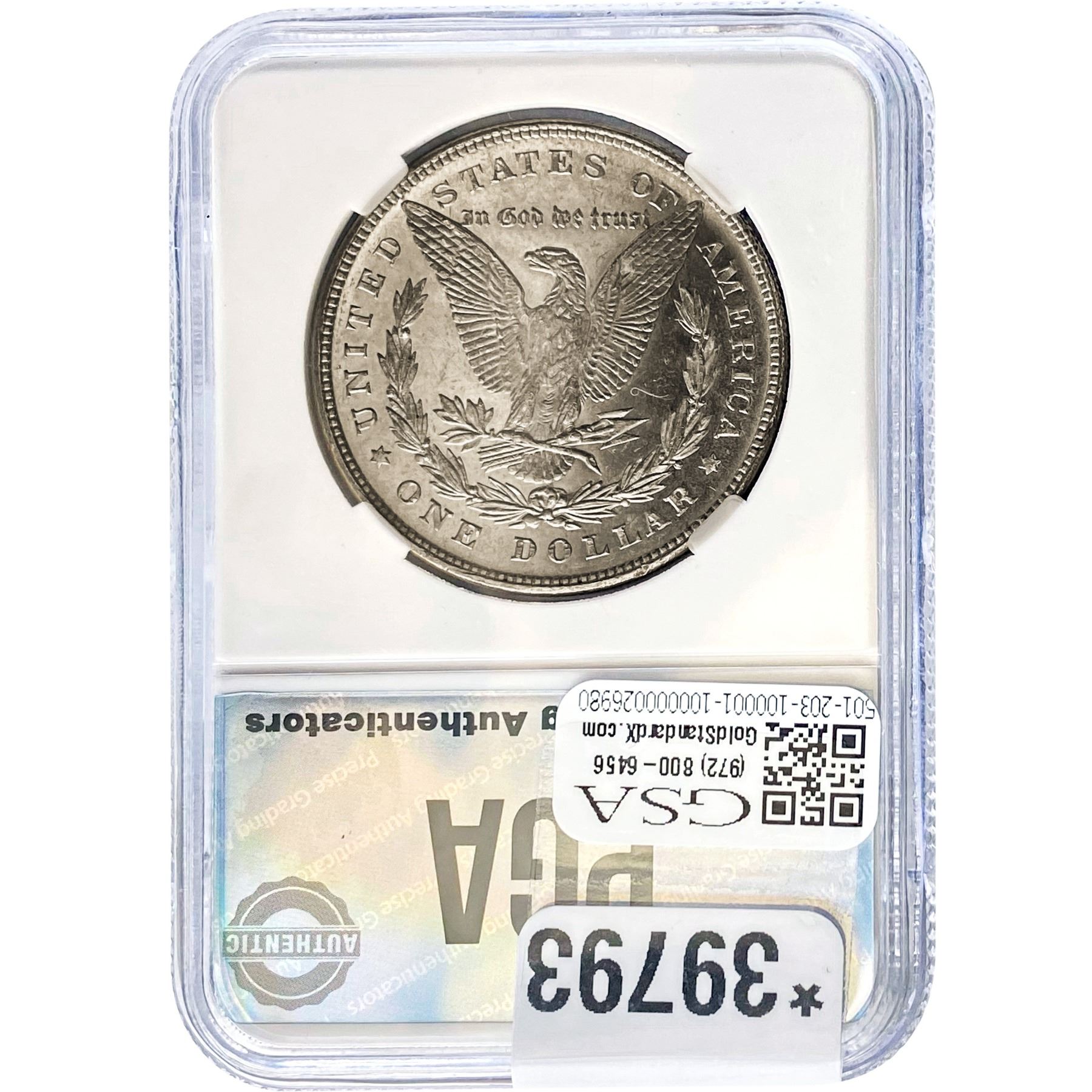 COINS AND CURRENCY LISTED IN GSA’S CATALOG AS GRADED AND ENCAPSULATED BY PCGS, NGC, ANACS, ICG, PCGS CURRENCY, PMG, PCGS BANKNOTE GRADING, CMC OR ANY OTHER THIRD-PARTY GRADING SERVICE ARE LIKEWISE SOLD “AS-IS” EXCEPT AS EXPRESSLY SET FORTH HEREIN. ALL THIRD-PARTY GRADING SERVICE GUARANTEES, INCLUDING AUTHENTICITY, ARE THE SOLE RESPONSIBILITY OF THE THIRD-PARTY GRADING SERVICE AND NOT WARRANTIES OR GUARANTEES OF GSA. BIDDERS SHOULD CONTACT THESE THIRD-PARTY GRADING SERVICES DIRECTLY WITH RESPECT TO ANY CLAIMS OR QUESTIONS THEY MAY HAVE CONCERNING THEIR GUARANTEES AND WARRANTIES. BIDDERS ACKNOWLEDGE AND AGREE THAT AUCTIONEER IS NOT BOUND BY OR LIABLE FOR ANY OPINION OR CERTIFICATION BY ANY THIRD-PARTY GRADING SERVICE. REMOVAL OF A PRODUCT FROM ITS PROTECTIVE CASING OR HOLDER OR ALTERATION OF ANY COIN HOLDER WAIVES ALL RIGHTS CONCERNING THE PRODUCT CONTAINED THEREIN.