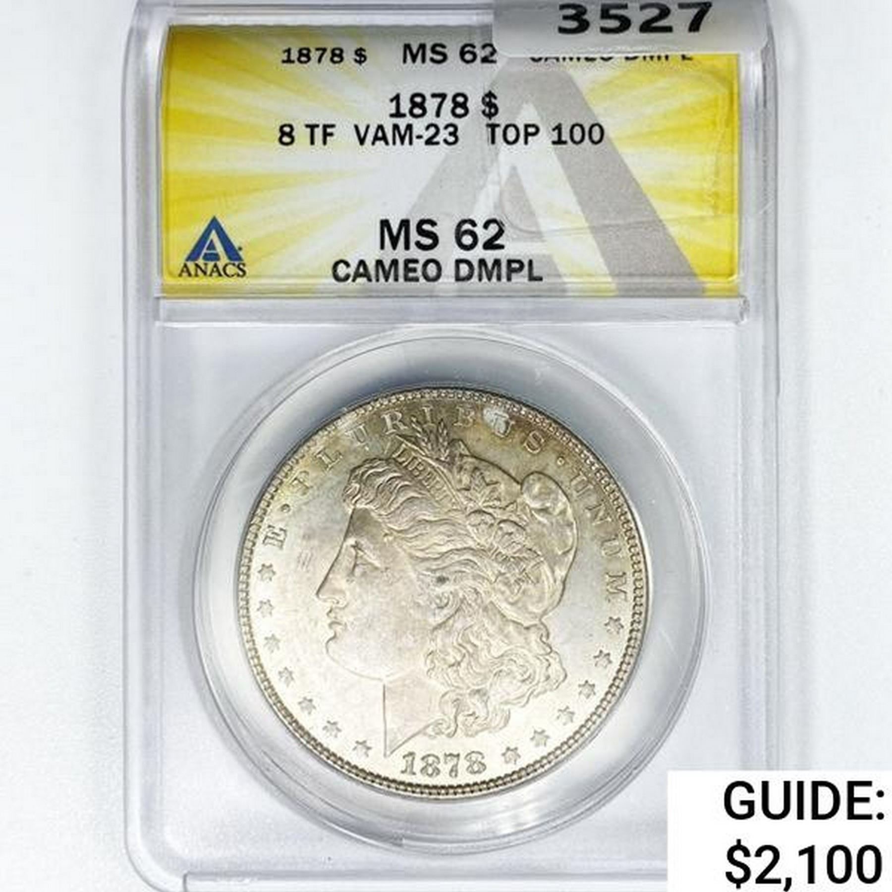 1878 8TF Morgan SILV $1 ANACS MS62 Cam DMPL VAM-23