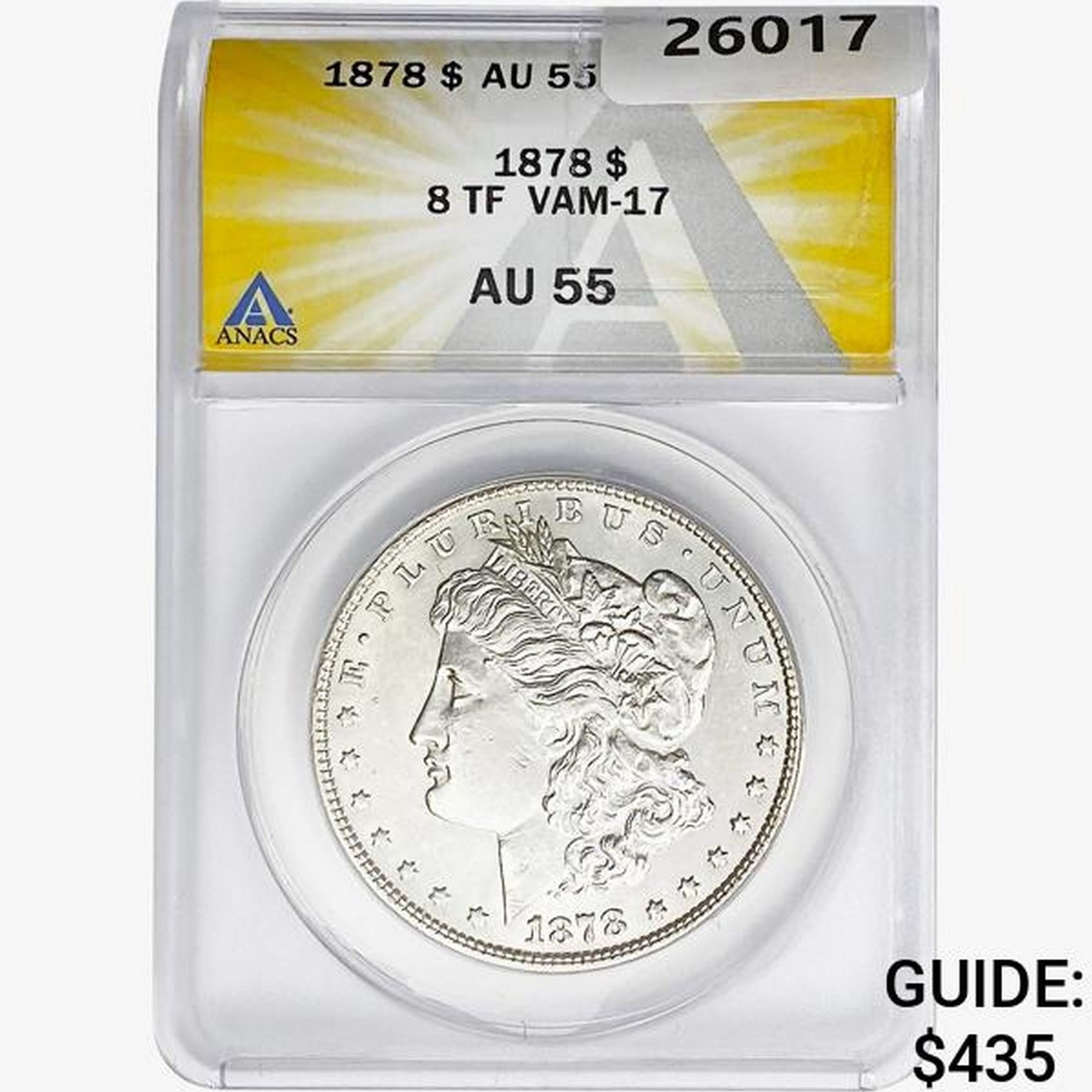 1878 8TF Morgan Silver Dollar ANACS AU55 VAM-17