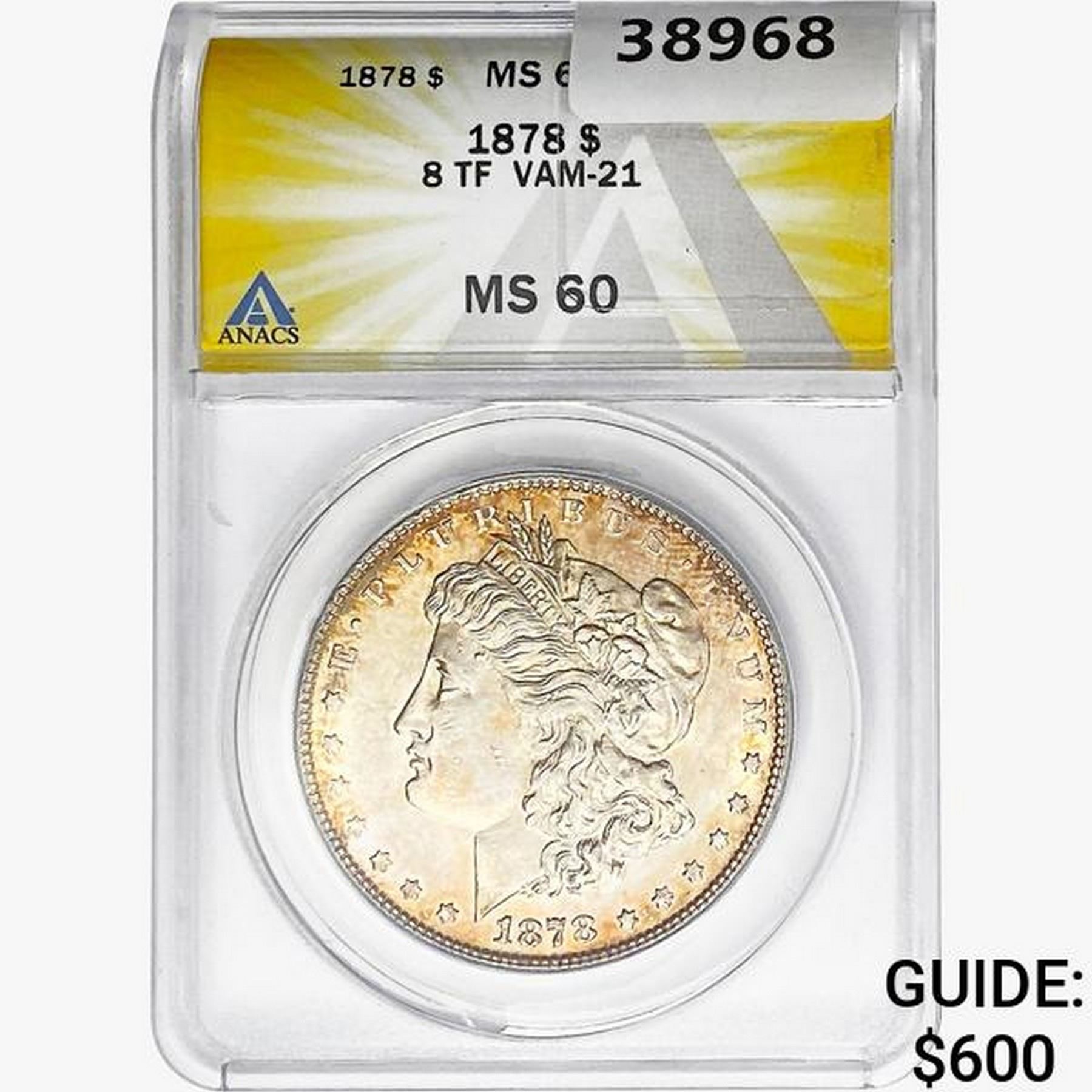1878 8TF Morgan Silver Dollar ANACS MS60 VAM-21