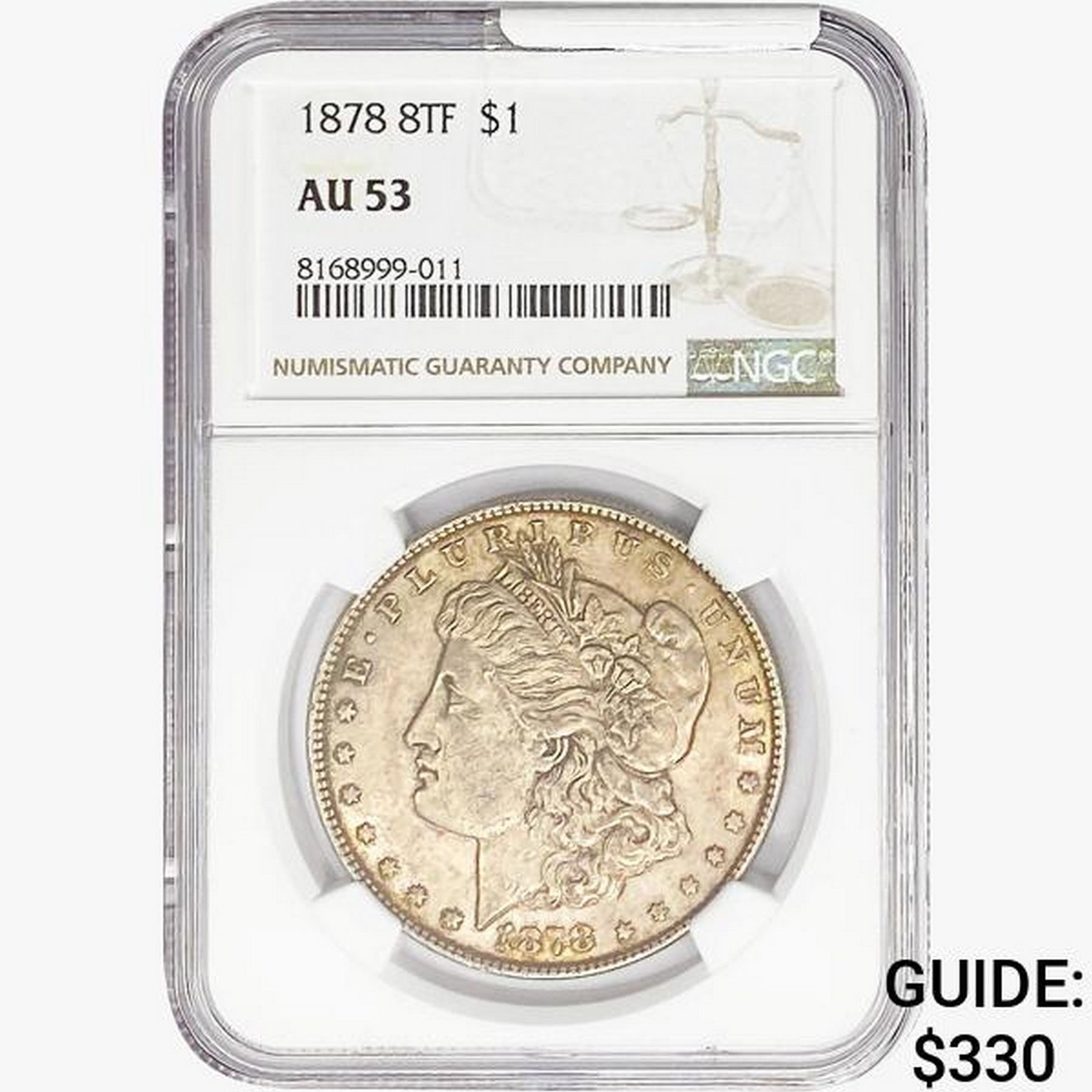 1878 8TF Morgan Silver Dollar NGC AU53