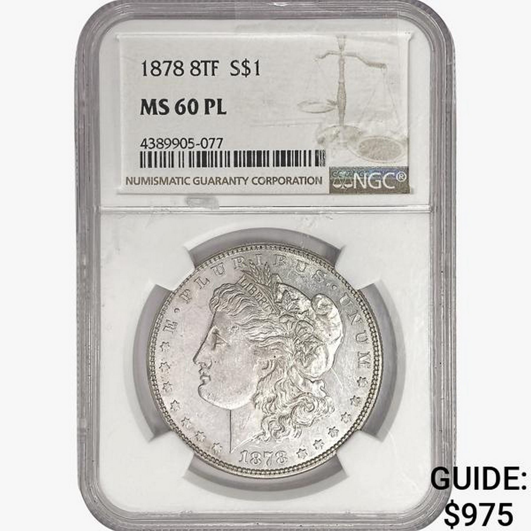 1878 8TF Morgan Silver Dollar NGC MS60 PL