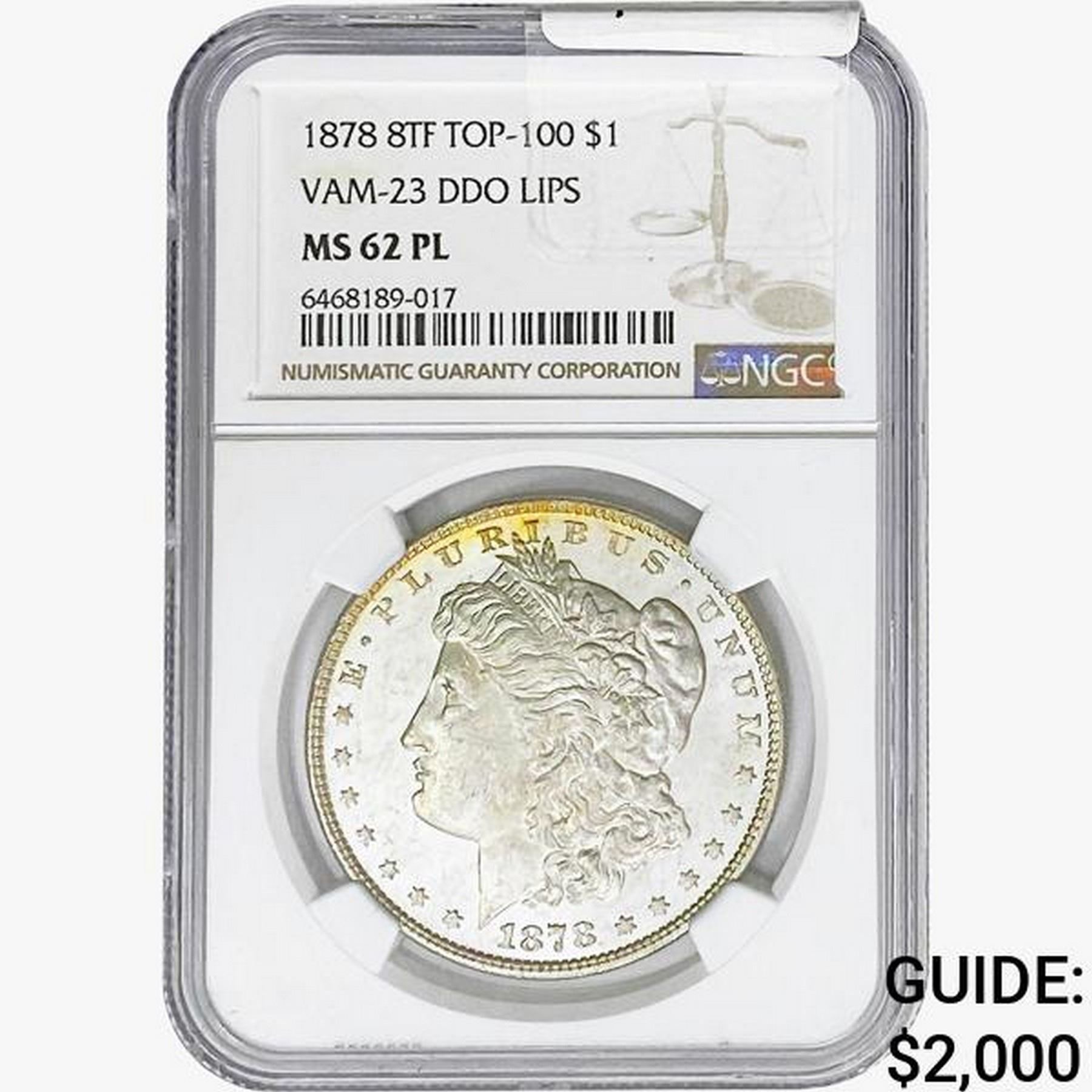 1878 8TF Morgan Silver Dollar NGC MS62 PL VAM-23 DDO LIPS