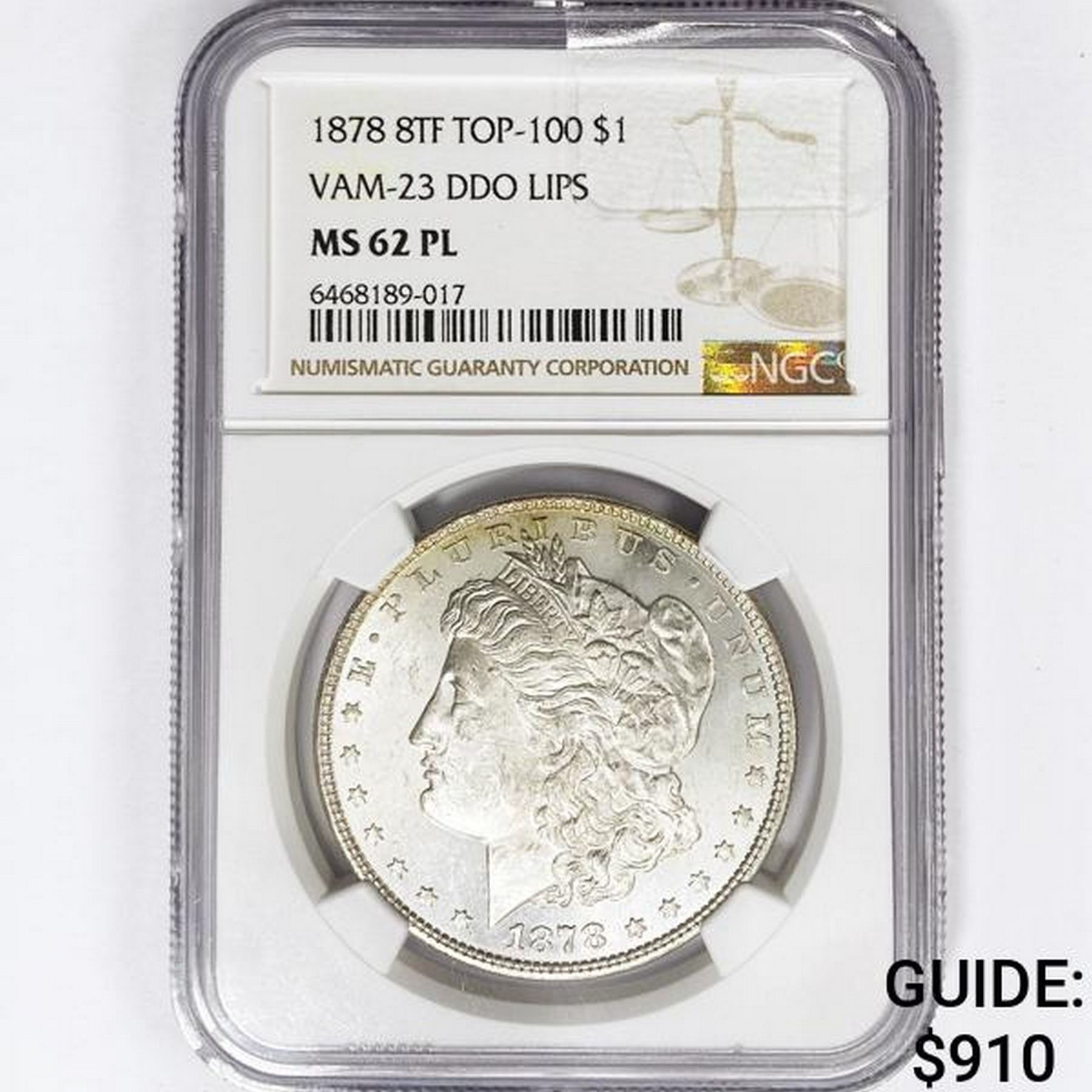 1878 8TF Morgan Silver Dollar NGC MS62 PL, VAM23 D