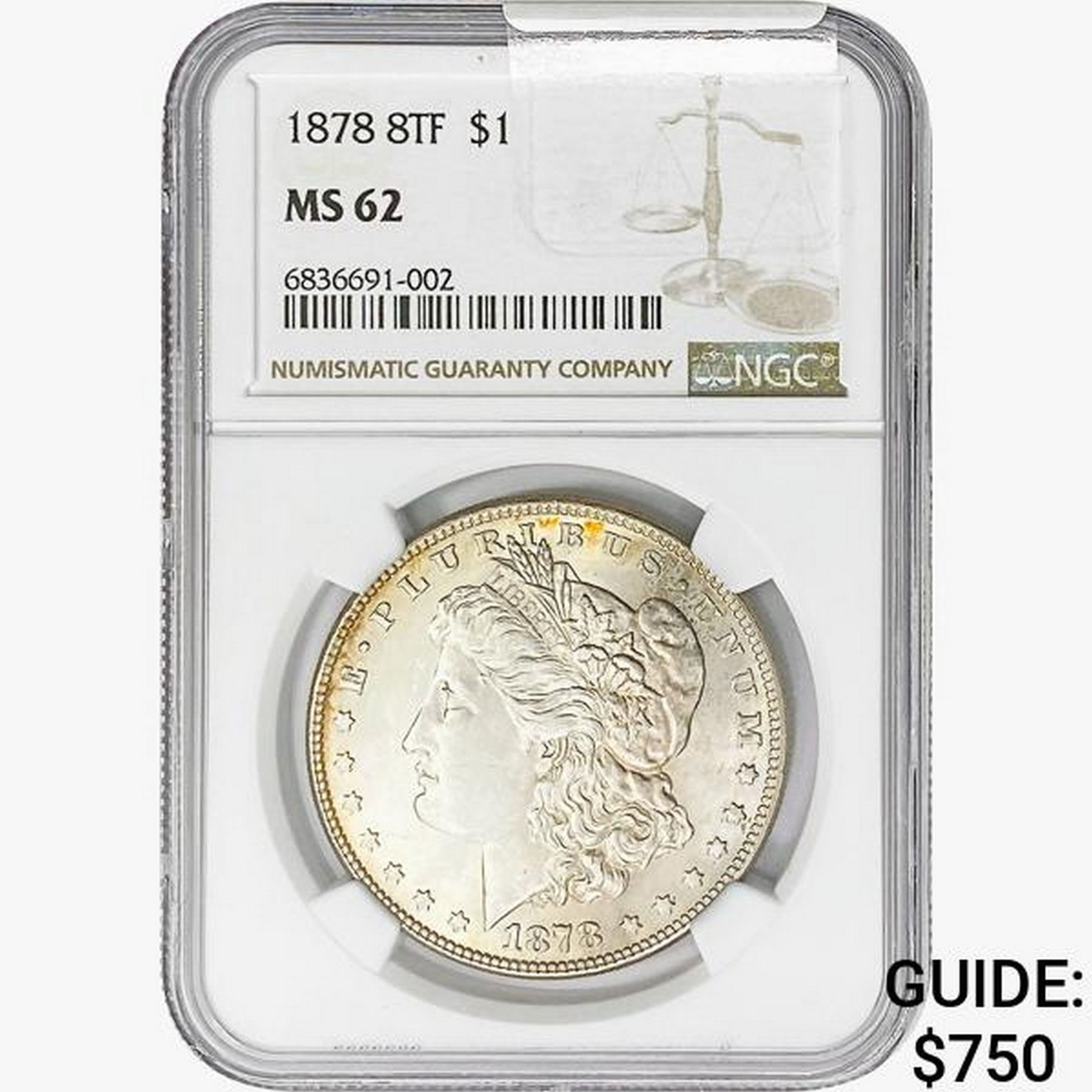 1878 8TF Morgan Silver Dollar NGC MS62