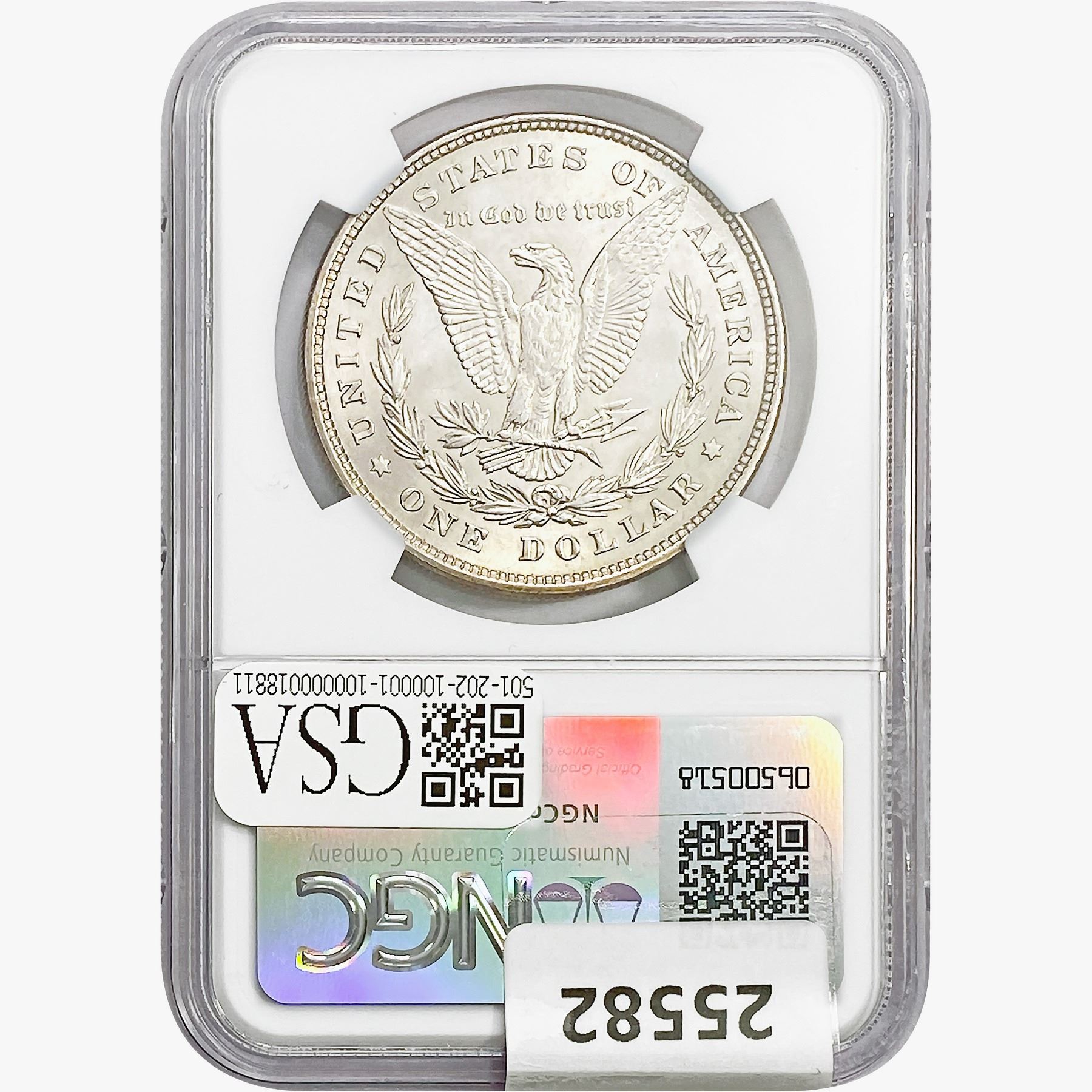 e. Coins sold referencing a third-party grading service are sold "AS IS" without any express or implied warranty, except for a guarantee by GSA that they are genuine. Removal or alteration of the holder, voids all of Bidder's claims concerning that Product. Certain warranties may be available from the grading services and Bidders are referred to them for further details: Numismatic Guaranty Corporation (NGC), PO Box 4776, Sarasota, FL 34230, www.ngccoin.com/services/writtenguarantee.asp; Professional Coin Grading Services (PCGS), PO Box 9458, Newport Beach, CA 92658, www.pcgs.com/guarantee.html; ANACS, 6555 S. Kenton St., Ste. 303, Englewood, CO 80111; and Independent Coin Grading Co. (ICG), 7901 East Bellview, Ave., Suite 50, Englewood, CO 80111.