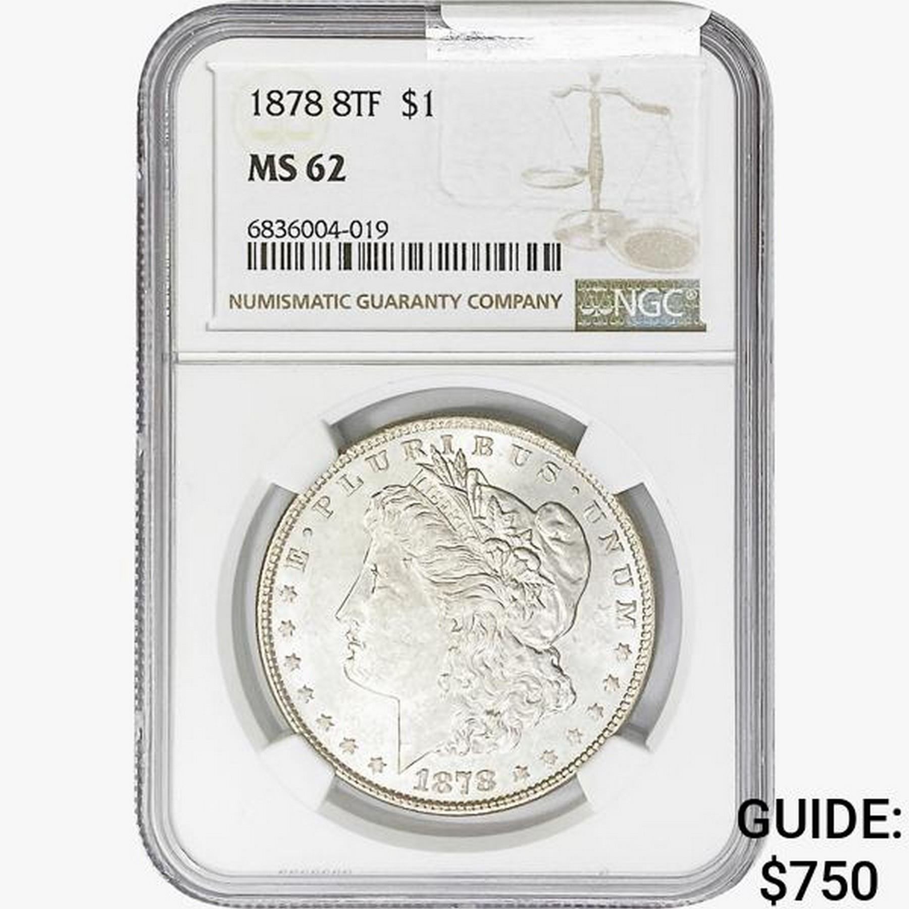 1878 8TF Morgan Silver Dollar NGC MS62