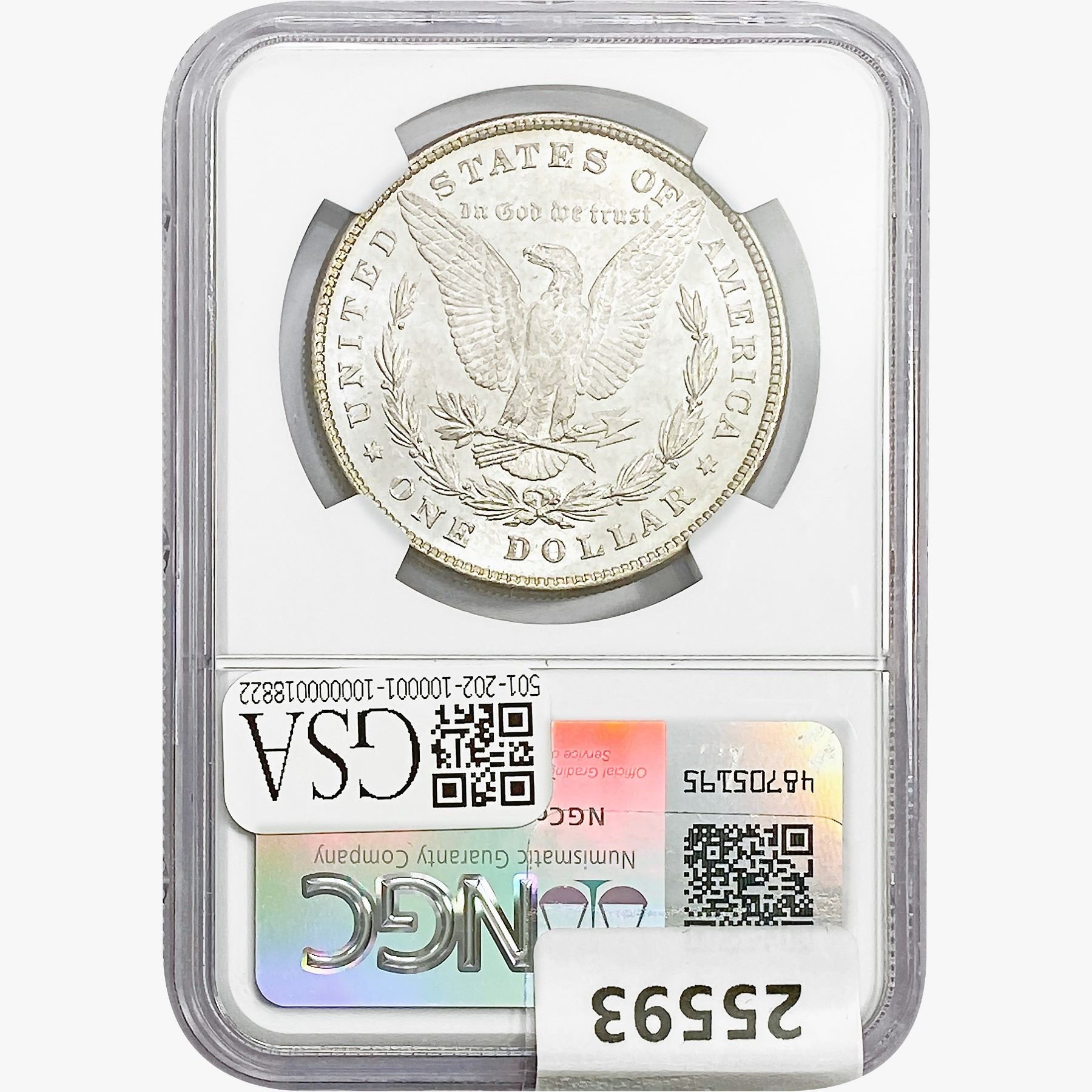 e. Coins sold referencing a third-party grading service are sold "AS IS" without any express or implied warranty, except for a guarantee by GSA that they are genuine. Removal or alteration of the holder, voids all of Bidder's claims concerning that Product. Certain warranties may be available from the grading services and Bidders are referred to them for further details: Numismatic Guaranty Corporation (NGC), PO Box 4776, Sarasota, FL 34230, www.ngccoin.com/services/writtenguarantee.asp; Professional Coin Grading Services (PCGS), PO Box 9458, Newport Beach, CA 92658, www.pcgs.com/guarantee.html; ANACS, 6555 S. Kenton St., Ste. 303, Englewood, CO 80111; and Independent Coin Grading Co. (ICG), 7901 East Bellview, Ave., Suite 50, Englewood, CO 80111.