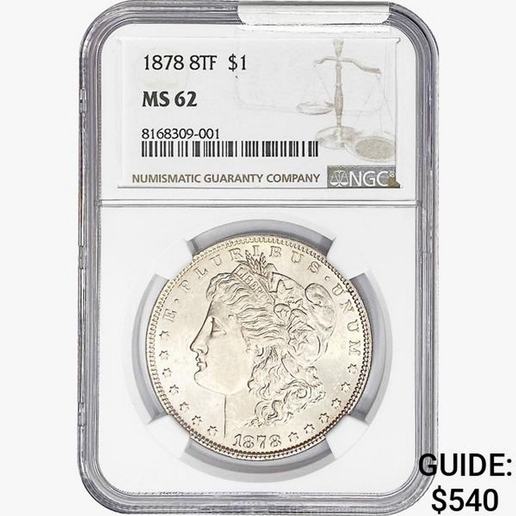 1878 8TF Morgan Silver Dollar NGC MS62