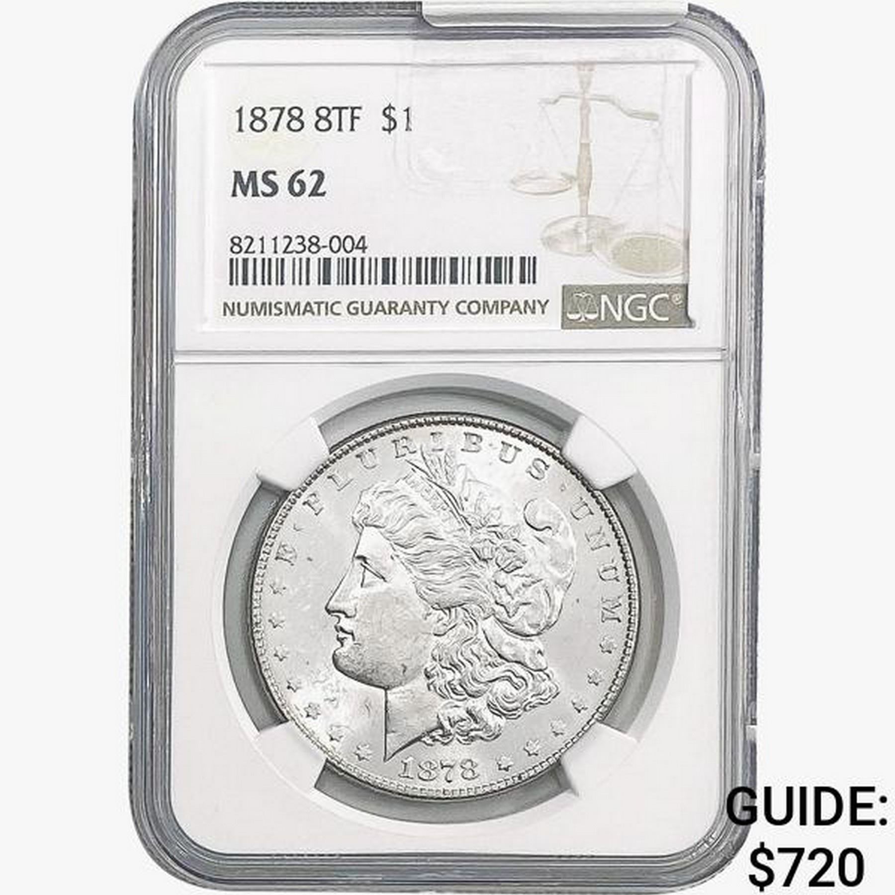 1878 8TF Morgan Silver Dollar NGC MS62