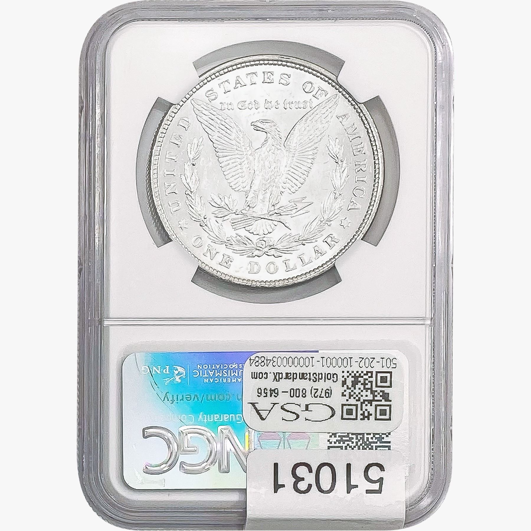 e. Coins sold referencing a third-party grading service are sold “AS IS” without any express or implied warranty, except for a guarantee by GSA that they are genuine. Removal or alteration of the holder, voids all of Bidder’s claims concerning that Product. Certain warranties may be available from the grading services and Bidders are referred to them for further details: Numismatic Guaranty Corporation (NGC), PO Box 4776, Sarasota, FL 34230, www.ngccoin.com/services/writtenguarantee.asp; Professional Coin Grading Services (PCGS), PO Box 9458, Newport Beach, CA 92658, www.pcgs.com/guarantee.html; ANACS, 6555 S. Kenton St., Ste. 303, Englewood, CO 80111; and Independent Coin Grading Co. (ICG), 7901 East Bellview, Ave., Suite 50, Englewood, CO 80111.