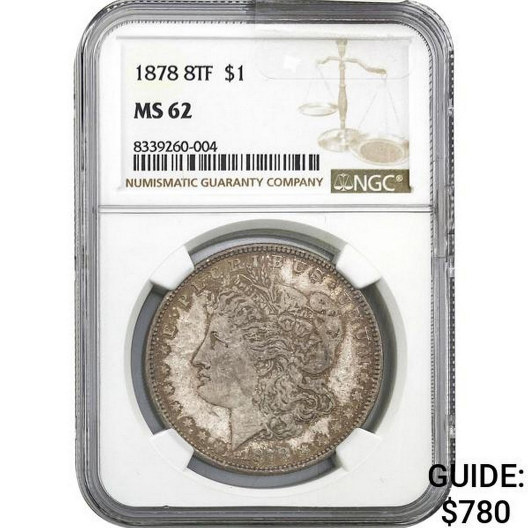 1878 8TF Morgan Silver Dollar NGC MS62