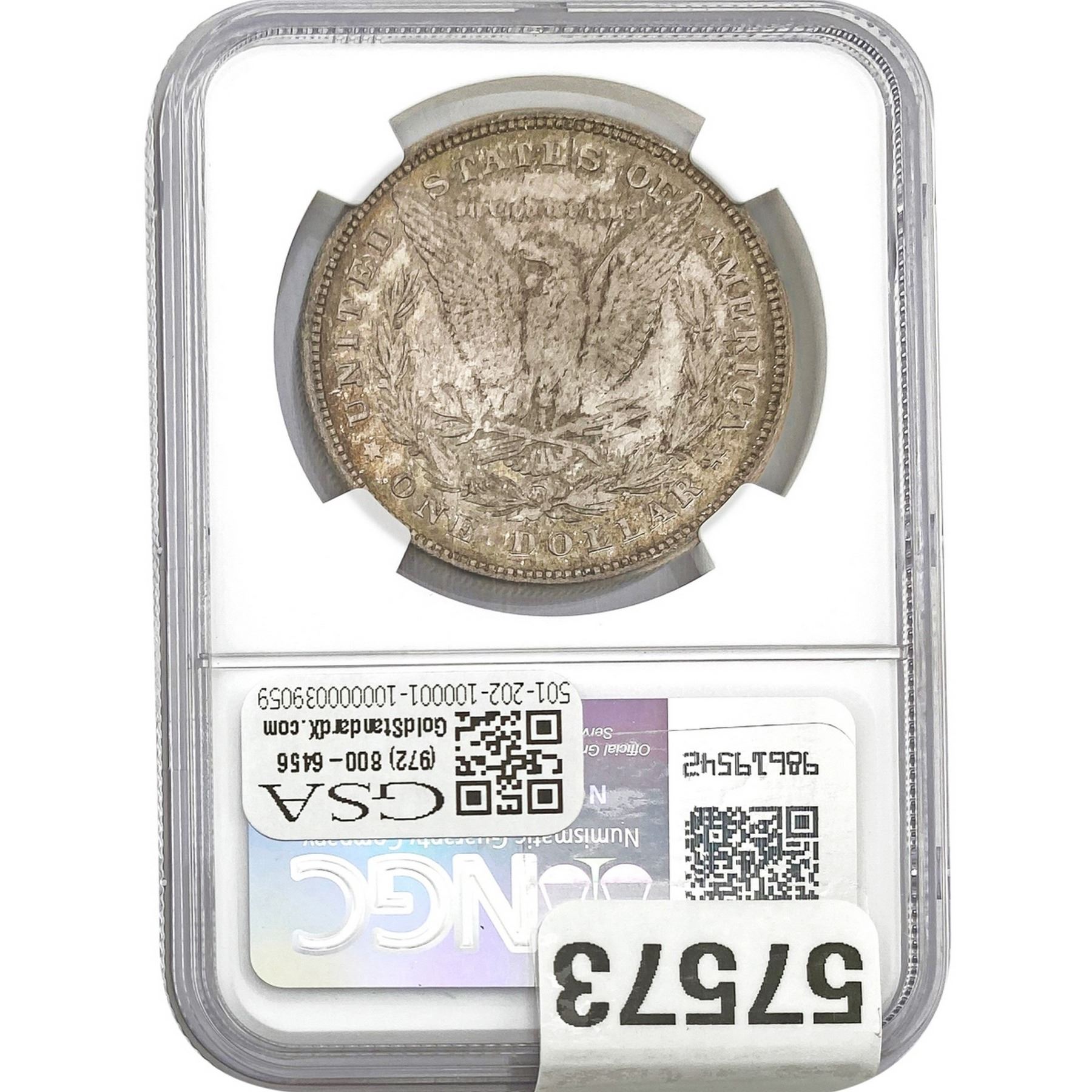 e. Coins sold referencing a third-party grading service are sold “AS IS” without any express or implied warranty, except for a guarantee by GSA that they are genuine. Removal or alteration of the holder, voids all of Bidder’s claims concerning that Product. Certain warranties may be available from the grading services and Bidders are referred to them for further details: Numismatic Guaranty Corporation (NGC), PO Box 4776, Sarasota, FL 34230, www.ngccoin.com/services/writtenguarantee.asp; Professional Coin Grading Services (PCGS), PO Box 9458, Newport Beach, CA 92658, www.pcgs.com/guarantee.html; ANACS, 6555 S. Kenton St., Ste. 303, Englewood, CO 80111; and Independent Coin Grading Co. (ICG), 7901 East Bellview, Ave., Suite 50, Englewood, CO 80111.