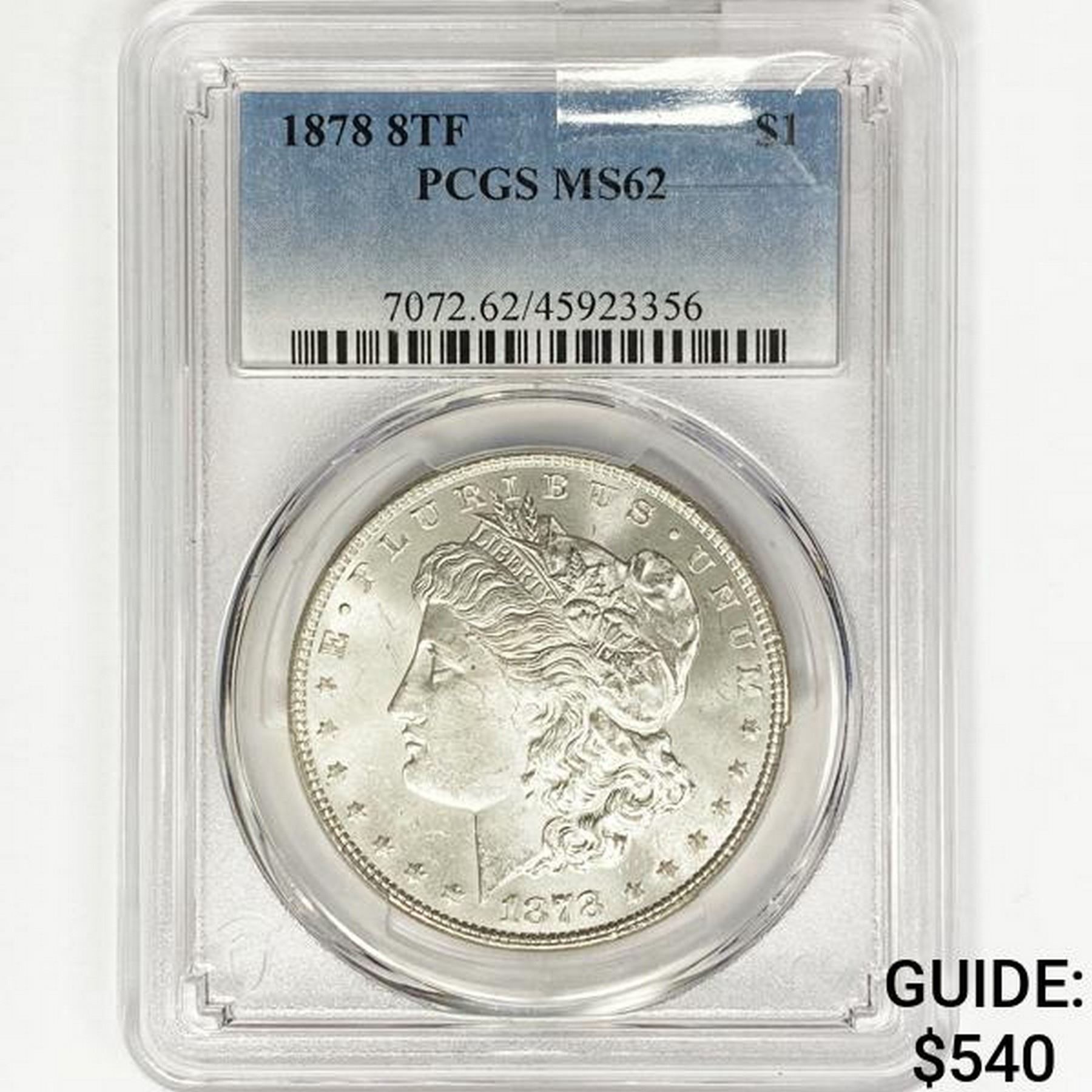 1878 8TF Morgan Silver Dollar PCGS MS62